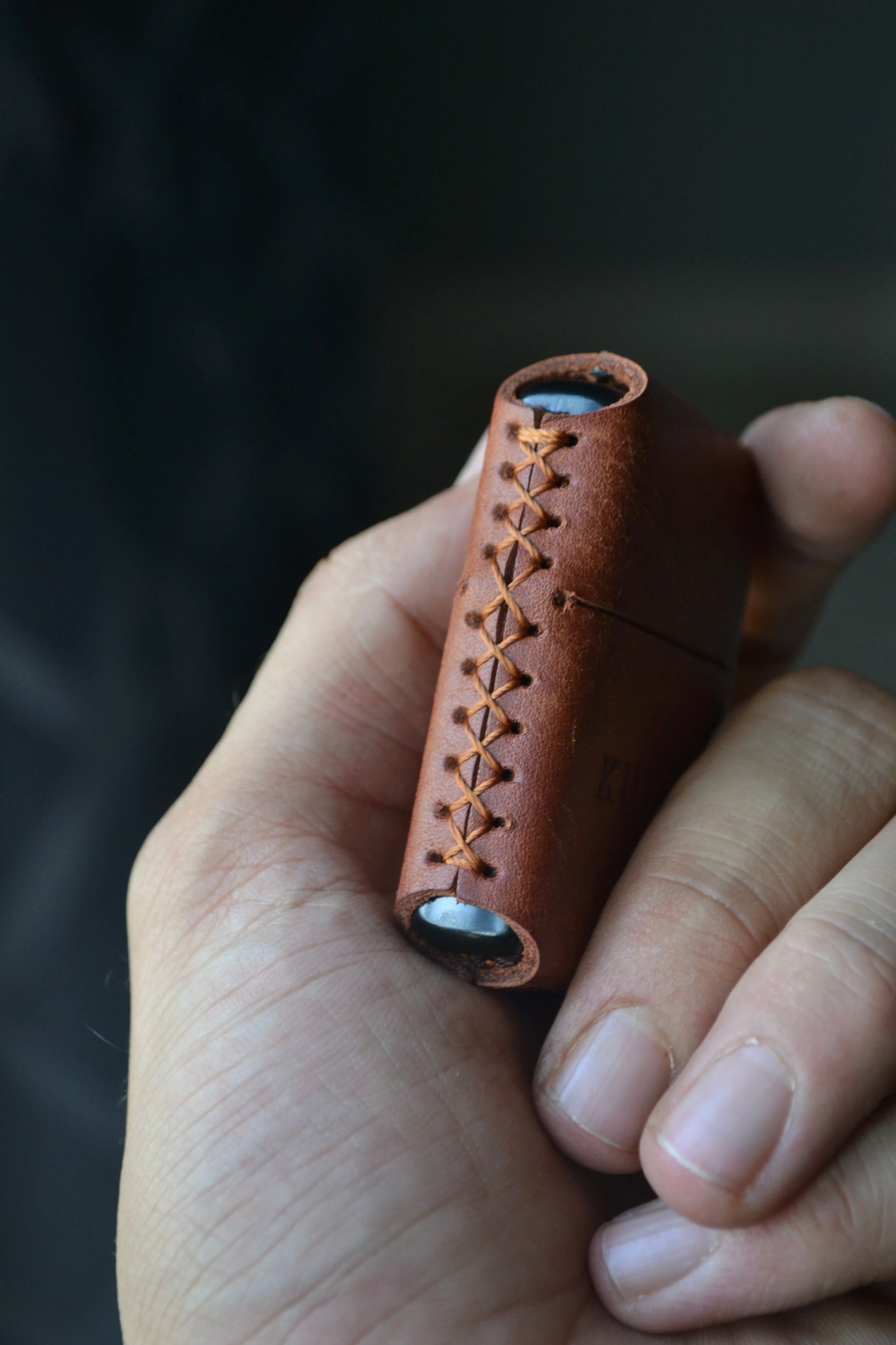 Kaplamada %100 dana derisi kullanıldı. Zamanla rengi değişir, iz bırakır, sana özel bir hale gelir. Çünkü bu çakmak seninle yaşar, seninle şekillenir.